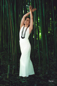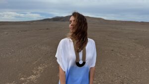 Токму таму ја пронајдов свилата од која создадов лимитирана едиција парчиња што го пренесуваат моето лично доживување, атмосферата и енергијата на тоа патување. Во процесот на рачно шиење, свилата се однесува како жив материјал – секое парче добива сопствен карактер, текстура и уникатна емоција, како мал фрагмент од едно незаборавно место.
