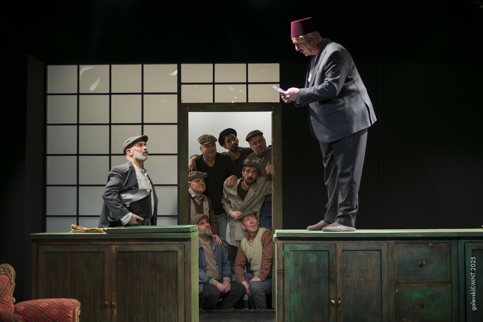 Претставата е во режија на Егон Савин, еден од водечките театарски режисери на Балканот, а во актерската екипа настапуваат: Александар Микиќ, Дарја Ризова, Тони Михајловски, Јордан Симонов, Тања Кочовска и Александар Михајловски (глас), заедно со ансамблот Дејан Стамчевски, Синан Ракип, Скендер Бериша, Зекирија Алим, Мирослав Атанасовски, Мартин Китановски и Хусеин Халили.