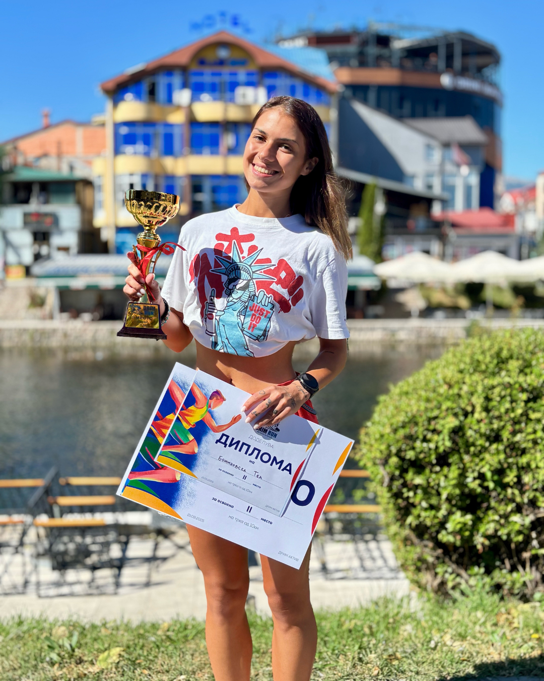 Искрено, трката што сѐ уште ми е во мислите е овогодинешниот Скопски маратон. Настапив на полумаратонот, поставив национален У23 рекорд и станав втора најбрза Македонка на полумаратон. Сепак, чувствувам дека можев да постигнам уште подобро време, но сѐ е со причина. Знам дека Бог така сакал, за следните трки да бидат уште повозбудливи. Верувам во тоа.