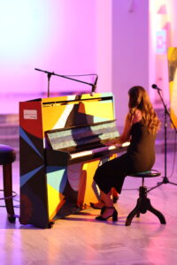 И еве, денес, едно ново пијано…обоено, апстрактно, како парче уметнички експеримент станува јавен симбол. Делото на уметниците Петар Томски – Whazz Djazz и Владимир Дади Ивановски изгледа како мозаик на градот: темно сино за стабилност, светло сино за раст, жолто и портокалово за енергија и оптимизам. Бои кои веќе почнуваат да свират пред да падне првата нота.