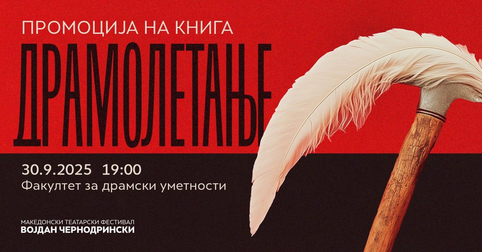29 септември: Книгата „Драмолетање“ во издание на Македонскиот театарски фестивал „Војдан Чернодрински“ од Прилеп ќе биде промовирана утревечер во 19 часот во Факултетот за драмски уметности во Скопје. Четири драми избрани од првиот повик и пичинг форум што се организираше во рамките на 59-то издание на фестивалот, се застапени во ова важно издание за македонската драматургија. Станува збор за