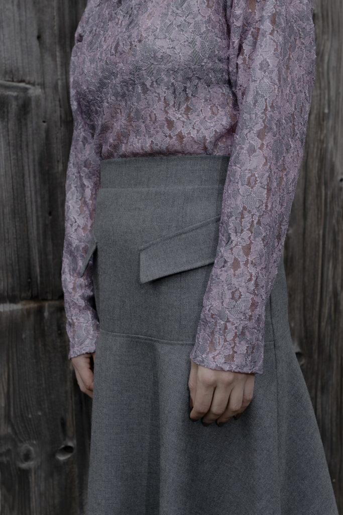 Материјалот е првиот носител на приказната. Секогаш почнувам од емоцијата: какво чувство треба да остане на кожата? Волната е стабилност и присуство.Тантелата е ранливост и тишина. Dead stock ткаенините се избор за иднината – свесност и одговорност. Секој материјал има своја вистина и своја тежина.